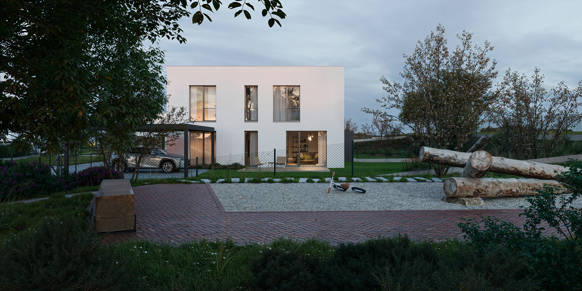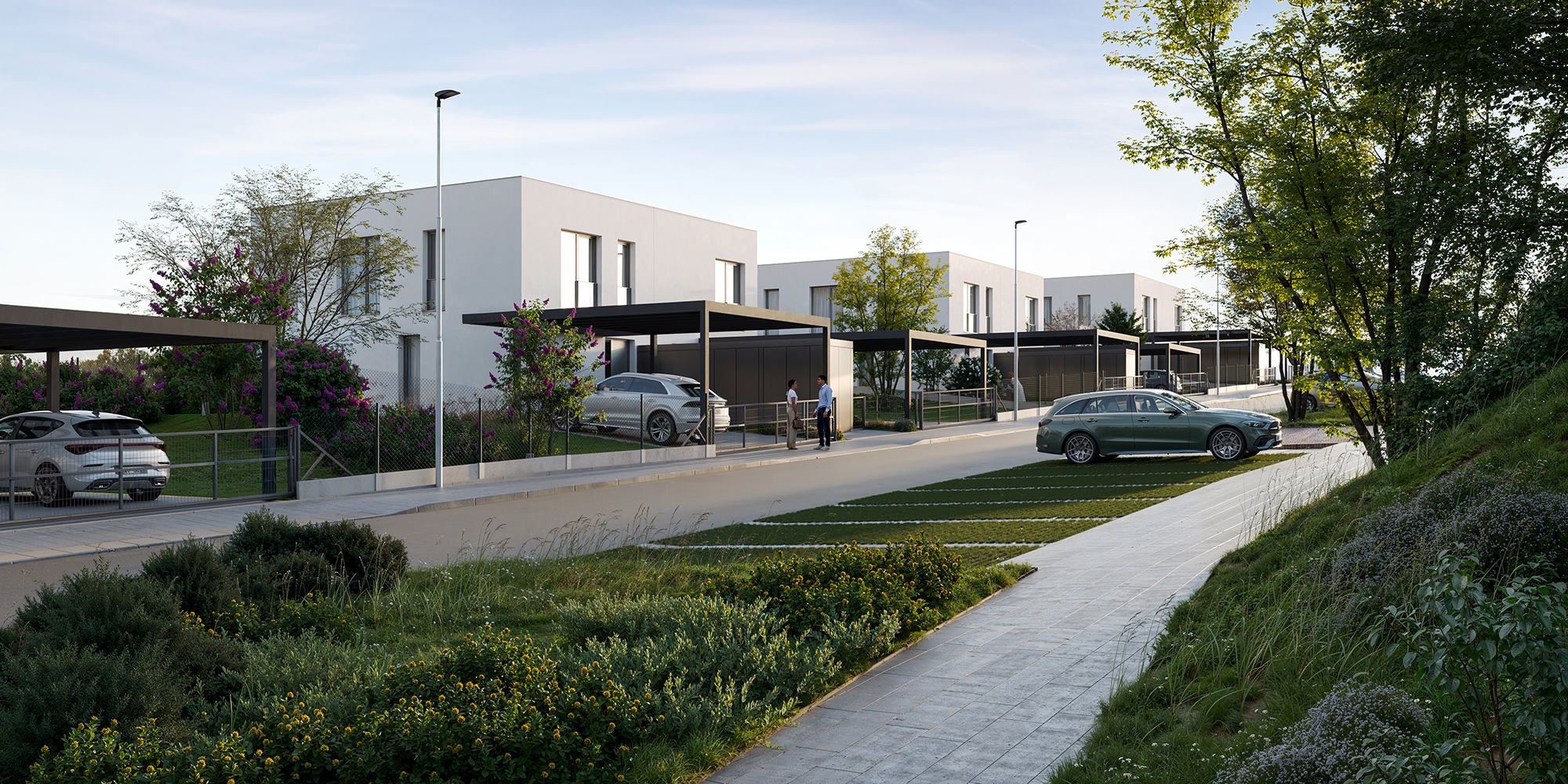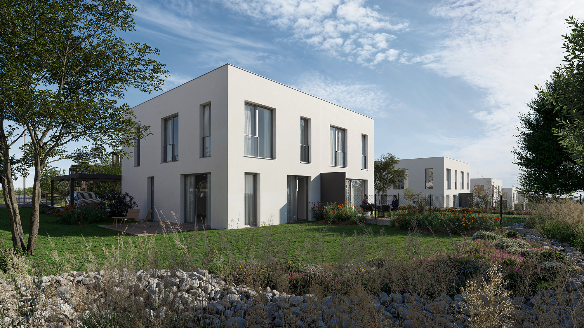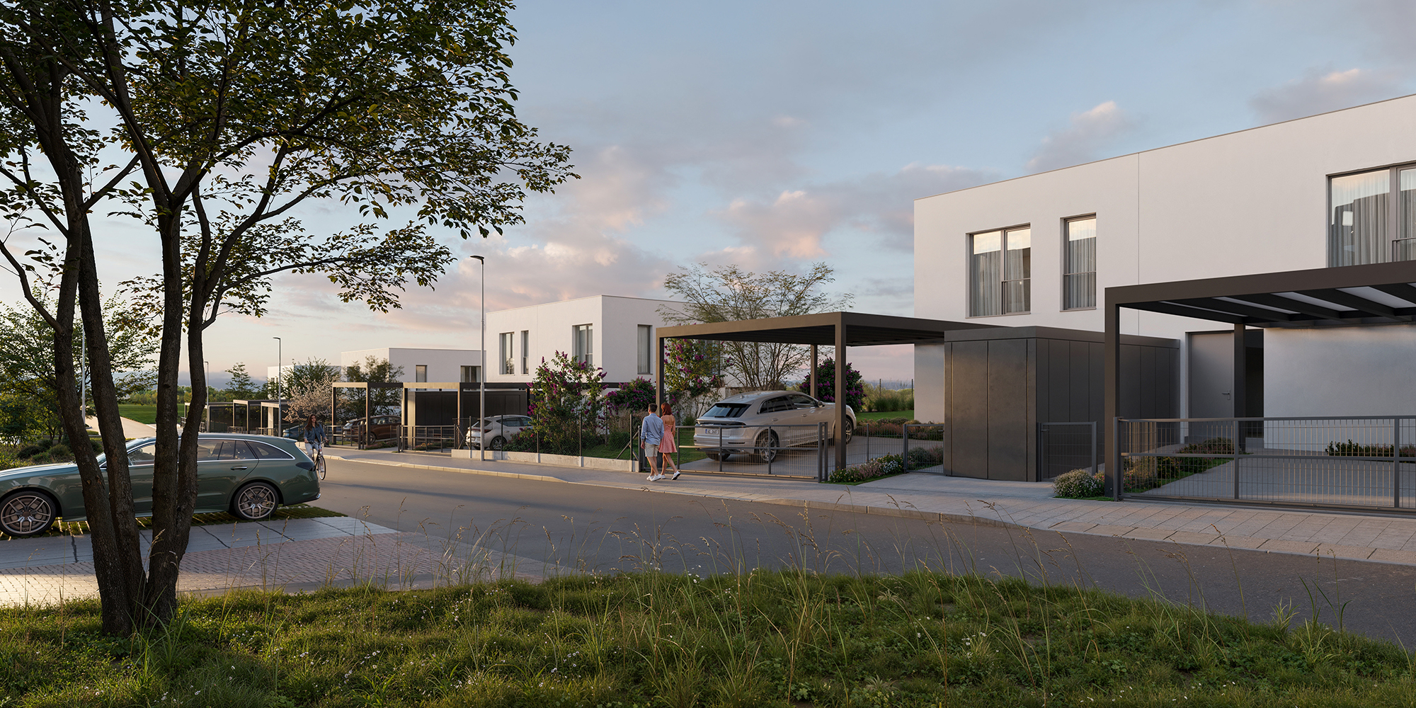 Spacious houses with large windows flood the interiors with natural light and brighten every corner. Private gardens and terraces invite you to relax, celebrate with family or enjoy evenings with friends under the stars.