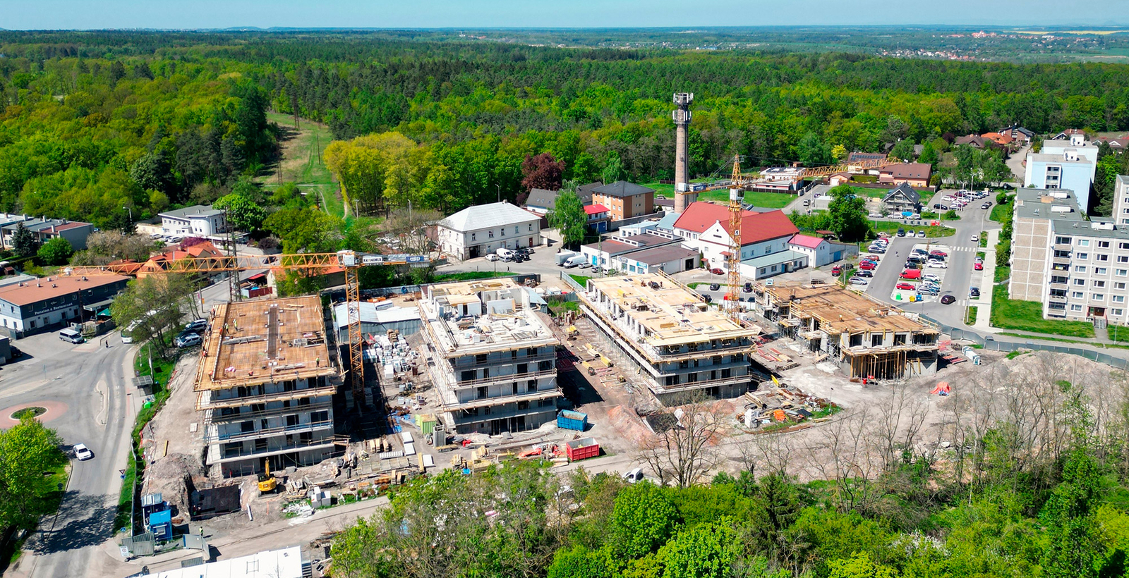 Třetí objekt má za sebou betonáž 2. nadzemního podlaží a probíhají přípravy na betonáž stropu podlaží třetího. Čtvrtá budova dosáhla dokončení stropní desky 2. nadzemního podlaží a aktuálně zde probíhá zdění 3. podlaží.